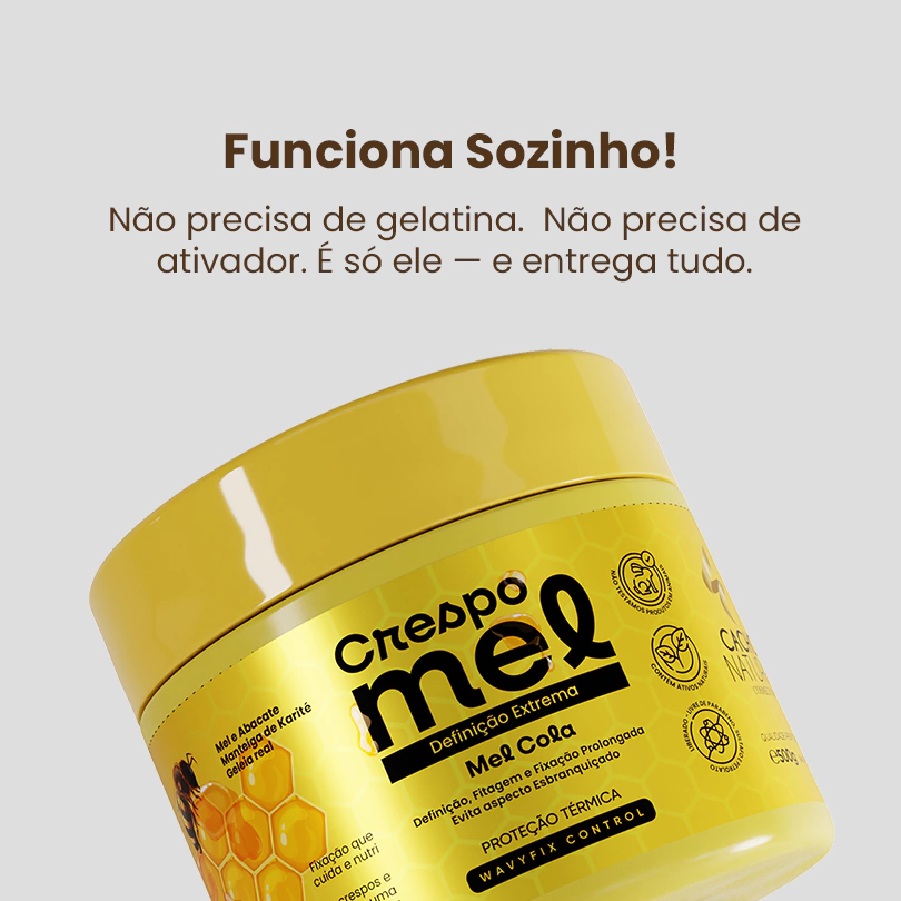 Aqui, a proposta não é usar os dois juntos, e sim revezar: em uma finalização você usa o Crespo Mel, na próxima o Definidor Crespo. Esse rodízio equilibrado potencializa os resultados e garante que os fios recebam diferentes tipos de cuidado — nutrição intensa do mel e hidratação profunda do Argan.